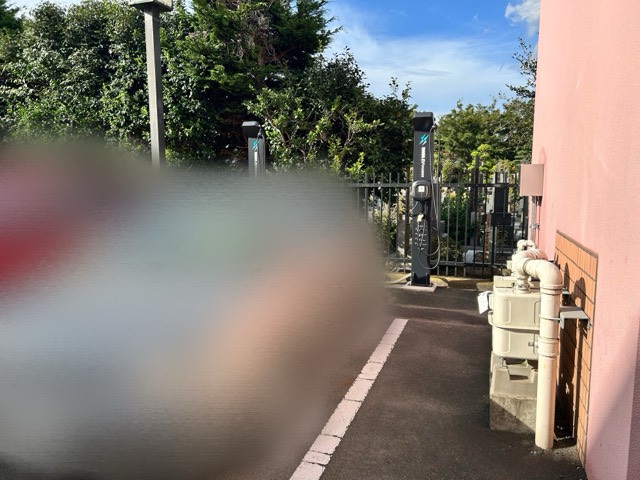 6kw普通充電器が2台、図書館駐車場入口すぐ右手に設置されていました。DMM EV ONアプリからのみ利用可能なため、emp認証カード等からは利用できません。伺った際は、アプリ表示では2台空いていると表示されているのにも関わらず、2台とも充電していない車が駐車しており、利用できない状況でした。