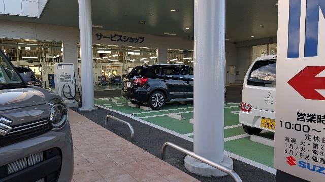 敷地に入って奥に進んでいくと建物前にあります。 少し入っていいのか悩むような感じでした。 充電する場所もここで止めていいのかも悩みどころです。