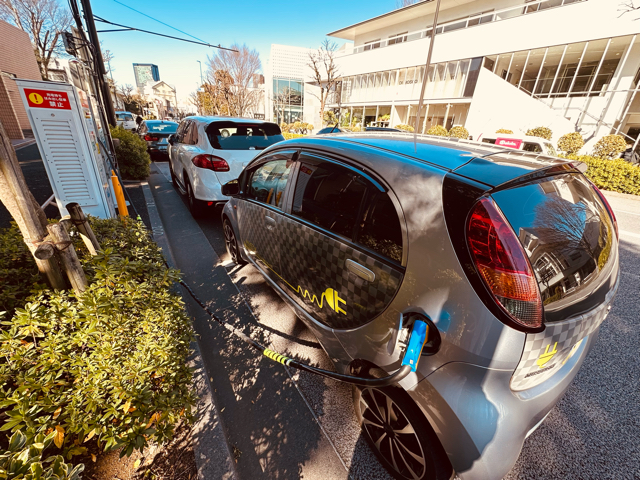 充電対応の駐車枠にエンジン車を止める輩が居て困る😒 アイミーブなのでバンパーベタ付けで充電器届いたけど‥ 大きい車は無理。利用車に対する配慮が全くない。