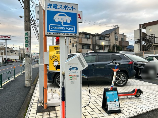 3kw普通充電器が設置されていました。e-Mobility Power系カードから営業時間内のみ利用できます。最大1時間まで利用できます。