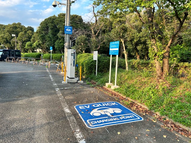 ニチコン製50kw急速充電器が設置されていました。e-Mobility Power系カード等やエコQ電認証から利用可能です。エコQ電認証の場合は、1分23.1円と非常にお手頃価格です。縦列駐車枠に設置されており、車両の充電口の位置によって停めずらい可能性があります。