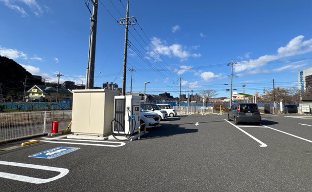TerraCharge認証新電元工業(株)150kW充電器です。施設北側駐車場入り、すぐ左手の駐車枠に設置されてます。駐車場無料です