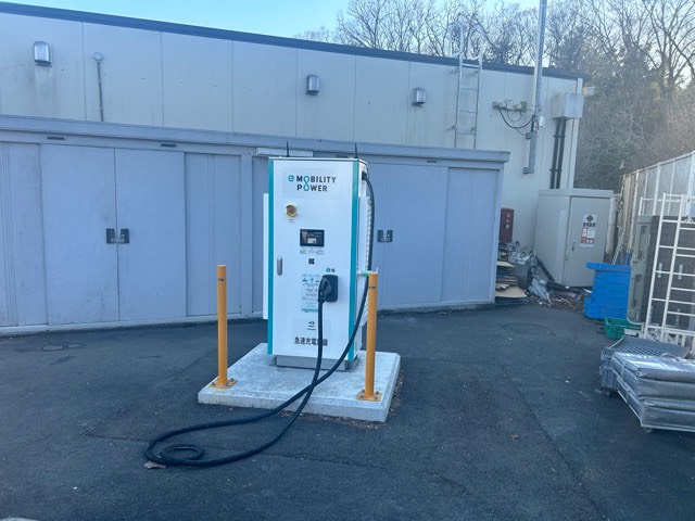 DAIHEN Corporation製50kW器です。GS奥の「車検の速太郎」の奥の洗車吹き上げコーナーに設置されてます。