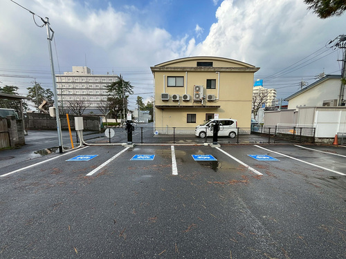 駐車場の前の道路に面してあります。駐車場の外側なので駐車料金はかかりません。