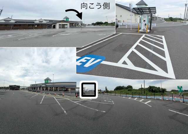 山陰自動車道から入ると、建物の奥の駐車場、マップで言うと東側の駐車場の入り口のそばにあります。文書と写真追加 設置位置がもう少し中寄りで、2つの充電車室で使えると「待機場所」にもなり、かつ、車の移動をしなくても繋ぎかえるだけで充電できるので便利だったと感じます。 どこの場所でもですが、待機場所から移動しなくても使えるように一つずらしてみるような工夫がこれから気をつけてほしいところかと思います。