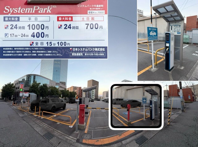 駐車場出口付近に充電スタンドがあります。 駐車料金以外の追加料金は必要ありませんでした。