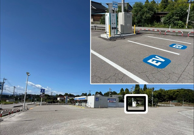 90kw充電器(2口タイプ)でした。 (手前はキュービクルです) カード認証機が2個あるタイプで迷わなくて良いですね。 元々ローソンが公道側と県道側に入り口があり入りやすいです