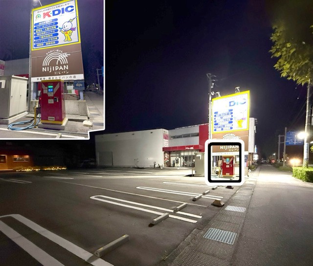 看板の足元にあります。 写真追加 FLASHの充電器は素晴らしいと思ってはいるのですが、設置場所か近辺にはコンビニなど何かしらの営業時間に縛られないお店が近辺にほしいです。