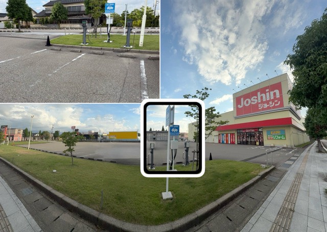 この施設はシステムの都合上、(1)と(2)に分かれて登録されています。 -------------------- 設置場所:平面駐車場南側イオンスタイル南入口近く(スロープ下) [急速充電器] 夏季・冬季は機器保護のため30kW程度に出力制限される可能性があります。 充電30分まで。 [普通充電器] 充電60分まで。