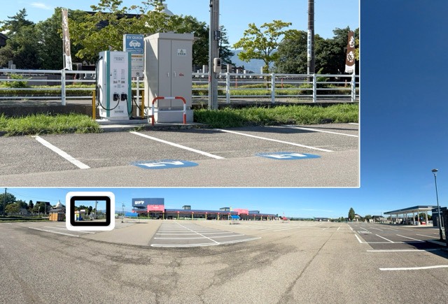 店舗横の優先スペースに充電器設置されていました