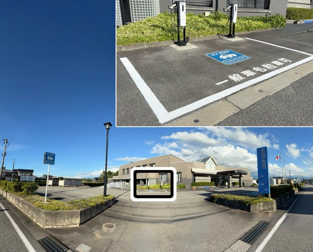 敷地に入って右側の建物の手前の角あたりに設置されています。写真追加 この施設のサイトを見ると 「設置場所 舟橋村役場 2基・6㎾(ただし2台同時利用はできません)」 この書き方は同時使用ができなくそれなら1台でいいんじゃないかと言うより、3kWなら2台使えるという解釈なのでしょうか。6kWで始めて2台になるとどうなるのか疑問が湧いてきます。 テラチャージの充電器はもっとシンプルにしてほしい気がします。