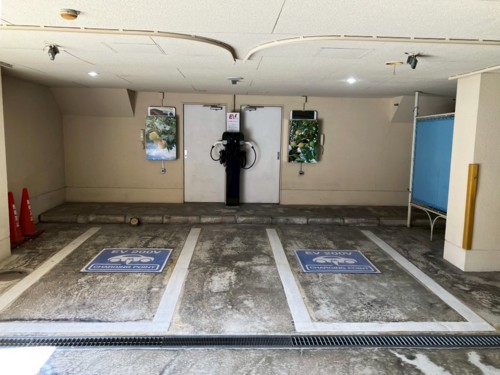 駐車場奥側に充電器があります