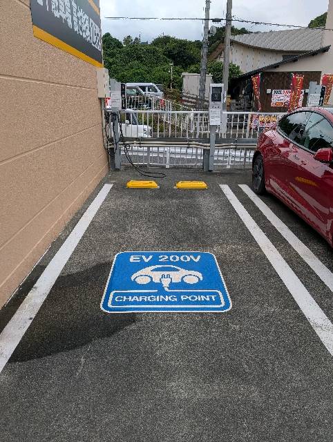 テスラ・モデル3充電しようとしましたが、充電出来ませんでした。残念。 普通充電器で充電できない経験は初めてで、このパナソニックの充電機は、他の場所では使えていたのですが、液晶画面がタッチパネルになっていたり、動作が異なるので別の機種だと思われます。オークワに設置してあるパナの充電機は、ボタン操作だけでしたし。 雨で充電操作大変でしたが、試してみて良かったです。