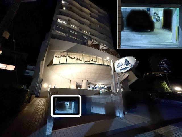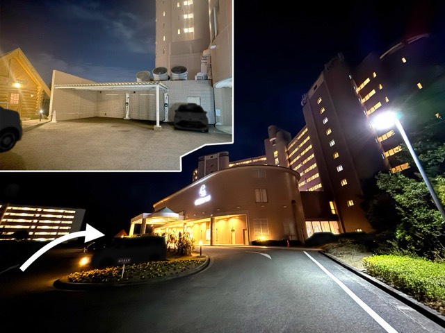 敷地に入って、左の奥の行いの中になりますが、一方通行に気をつけて行ってください。文書と写真追加 一台はホテル所有の車みたいで、ある意味コーンのように社質を守ってもらえていると思います。