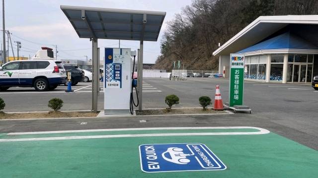 東光高岳製50kW急速充電器です。 現在はeMP提携充電カードでは利用できなくなりました。 敷居内にコインランドリーもあります。